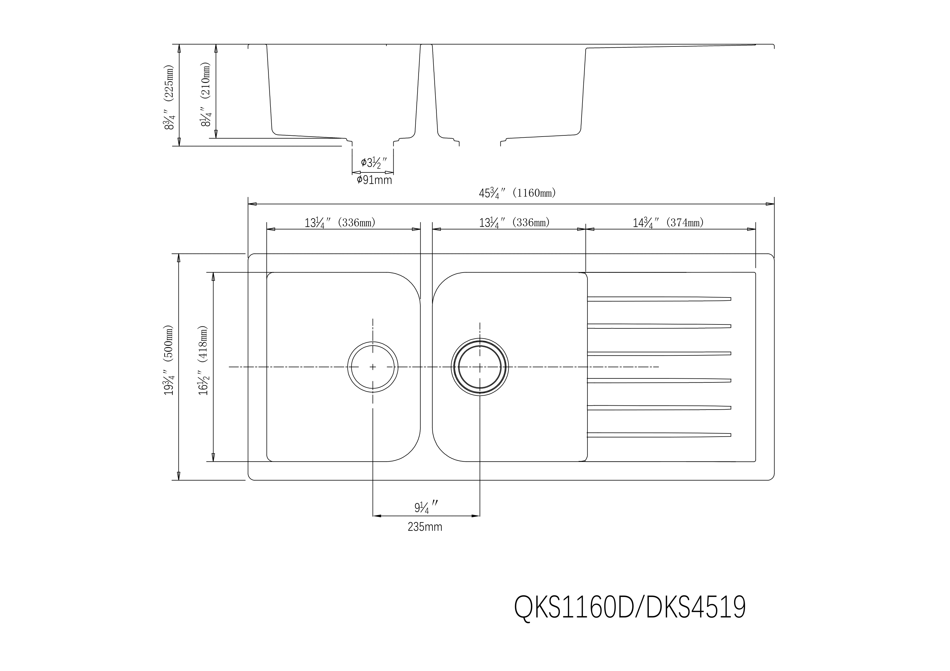 Quartz Top/Undermount Kitchen Sink Size: 1160*500*225mm Double Bowl With Drainer Matte Black