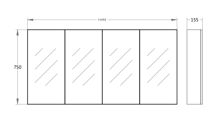 1480L* 750 H *150Dmm Four Doors